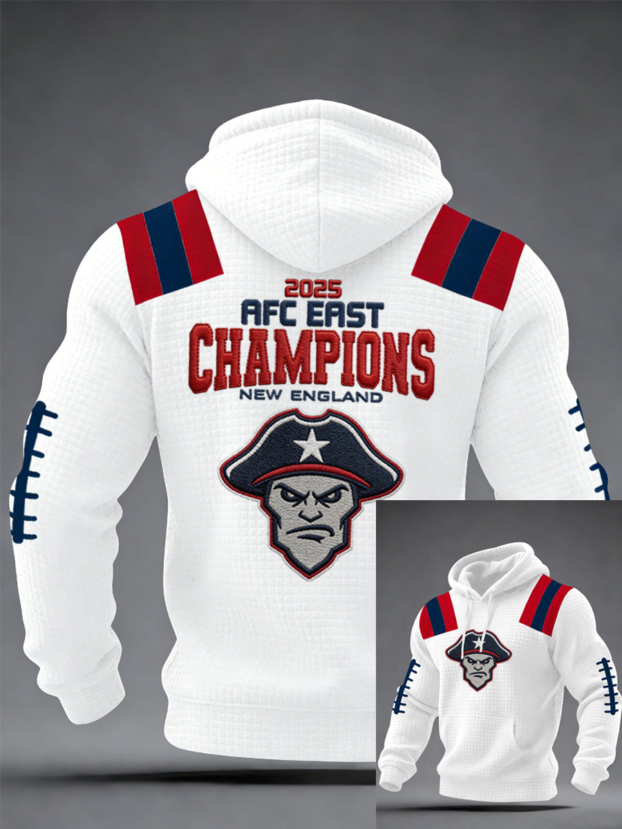 Men's 2025 AFC East Champions Gift For Football Fans Casual Checkered Hoodie