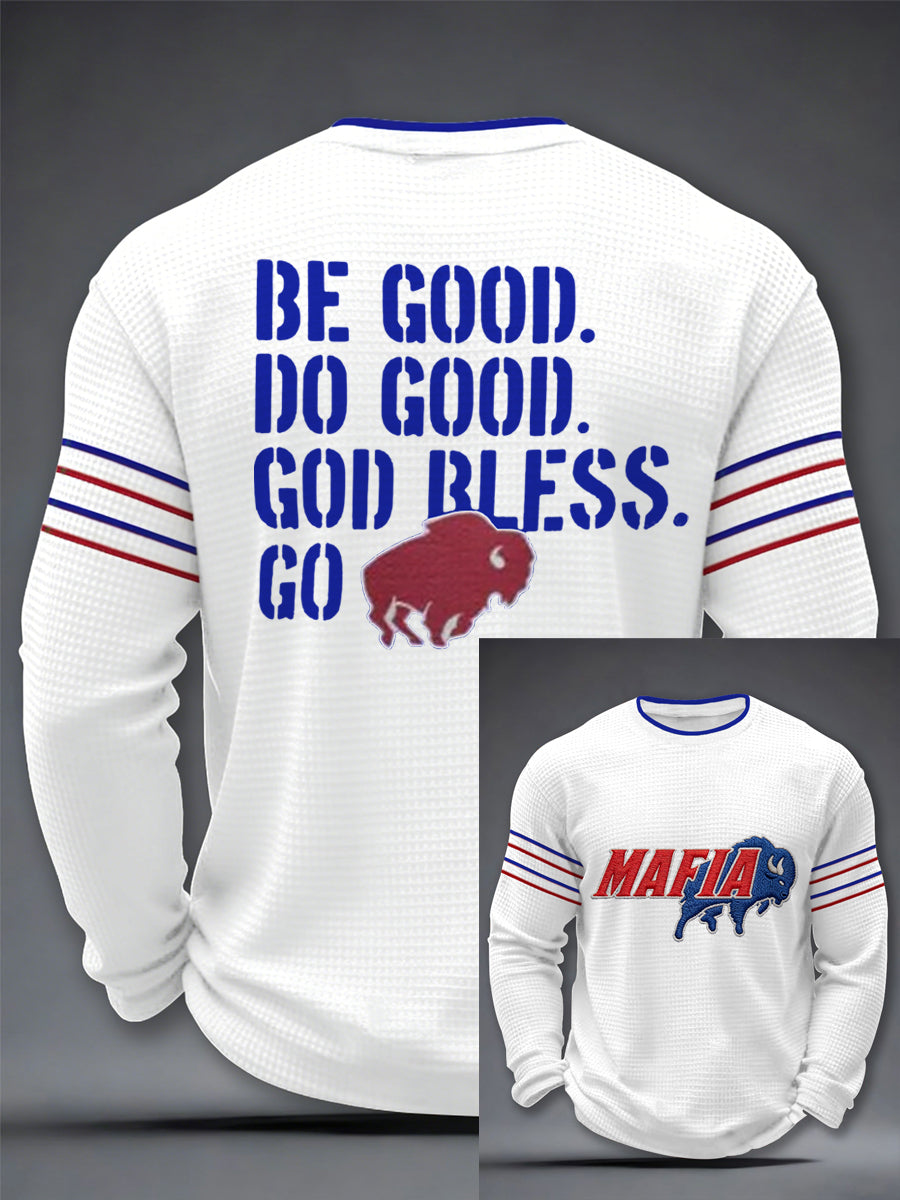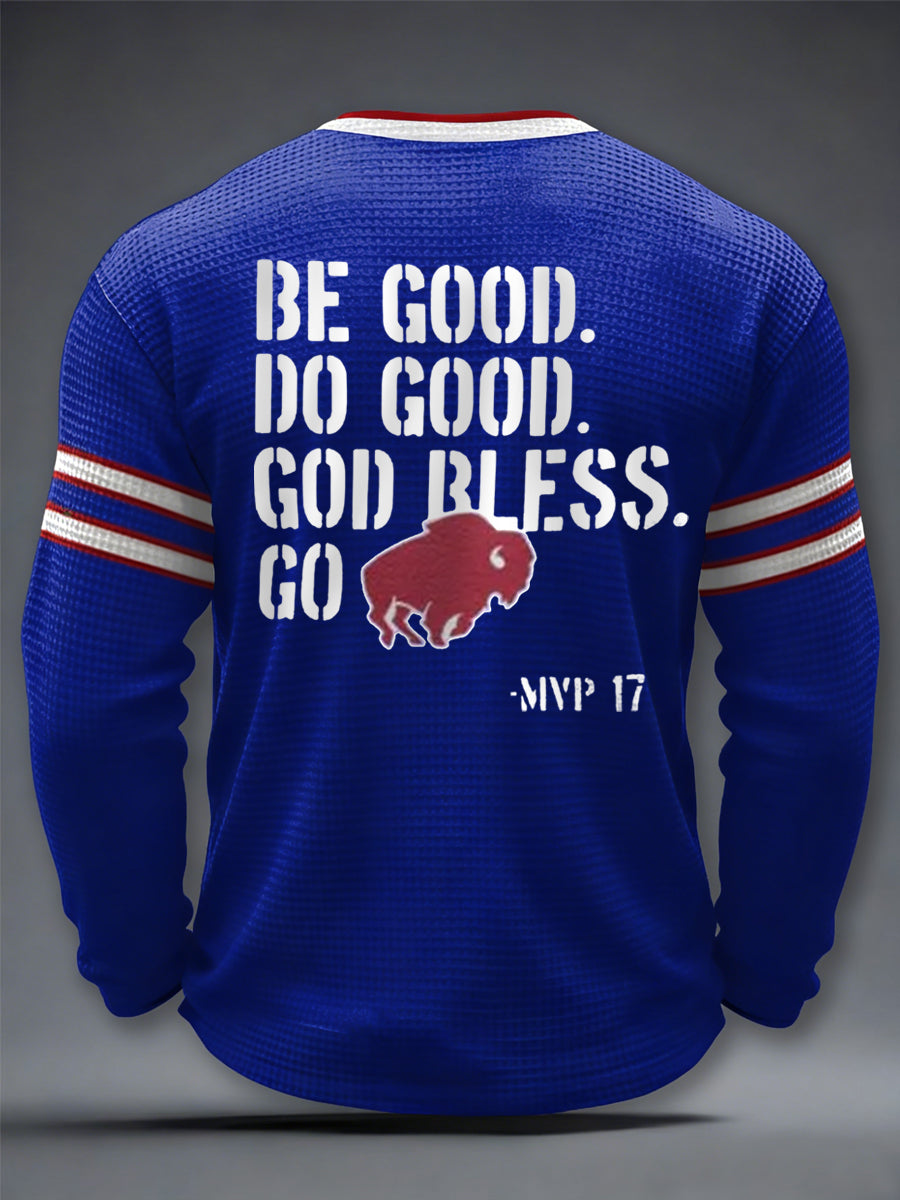 Men's Be Good Do Good God Bless Go Bills Football Fans Gameday Casual Waffle Long Sleeve T-Shirt