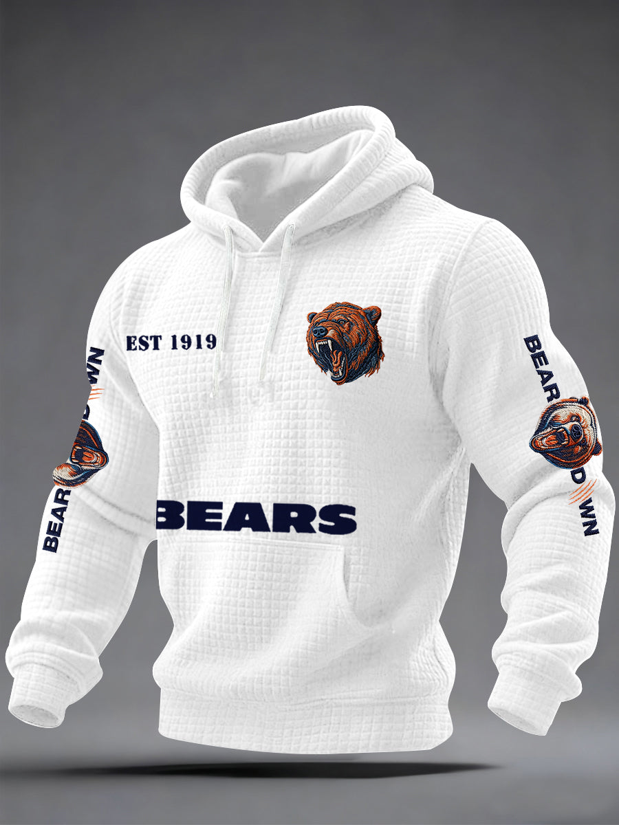 Men's Bears Print Football Fans Gameday Casual Waffle Checkered Hoodie