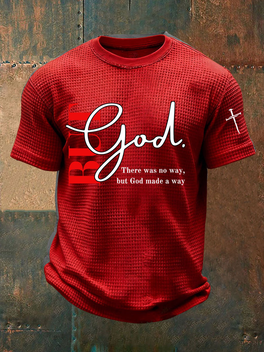 Men's But God Waffle Print Casual T-Shirt