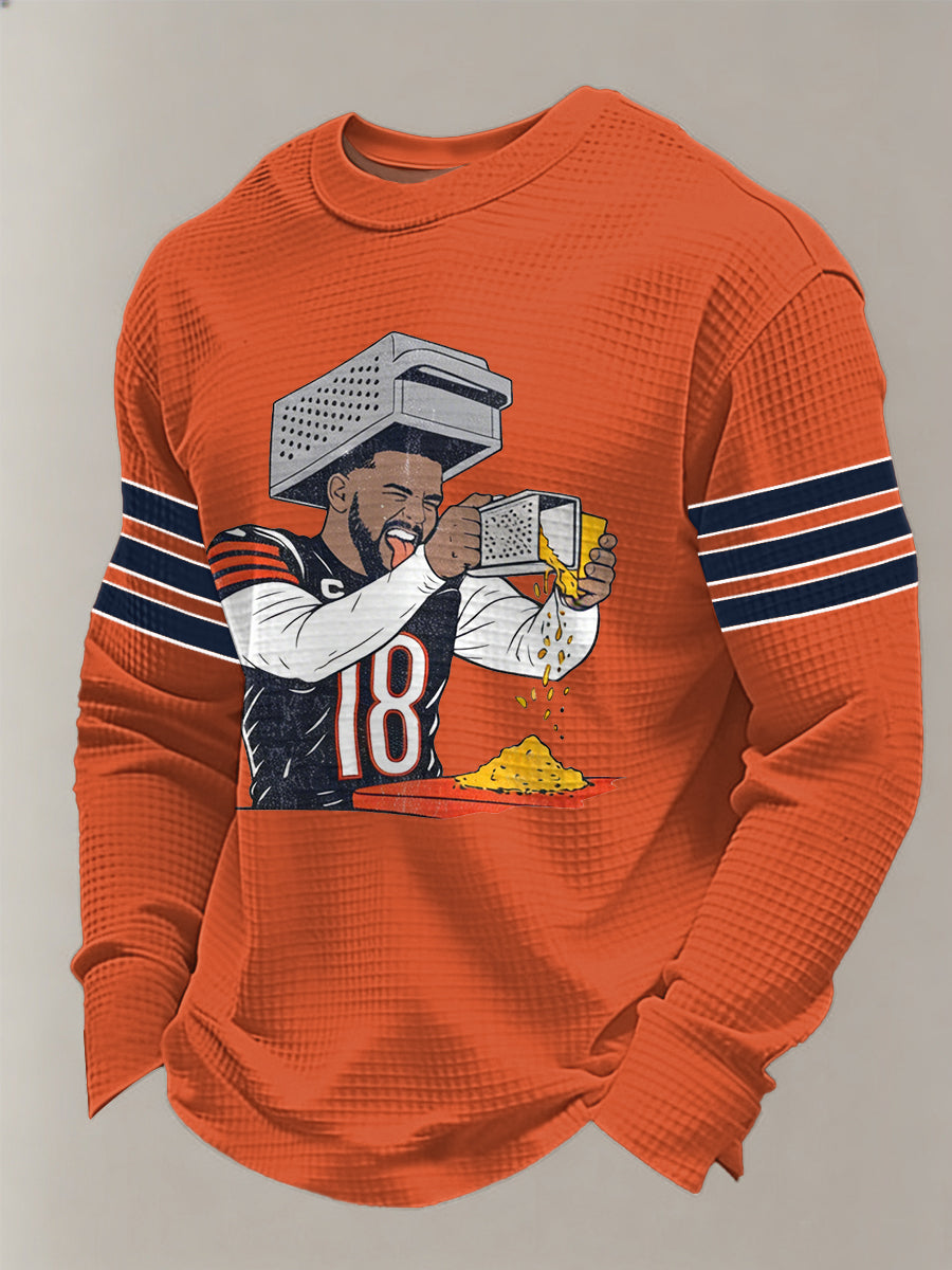 Men's Caleb Gratin' Cheese Print Gift For Football Fans Casual Waffle Long Sleeve T-Shirt