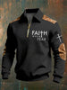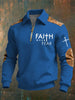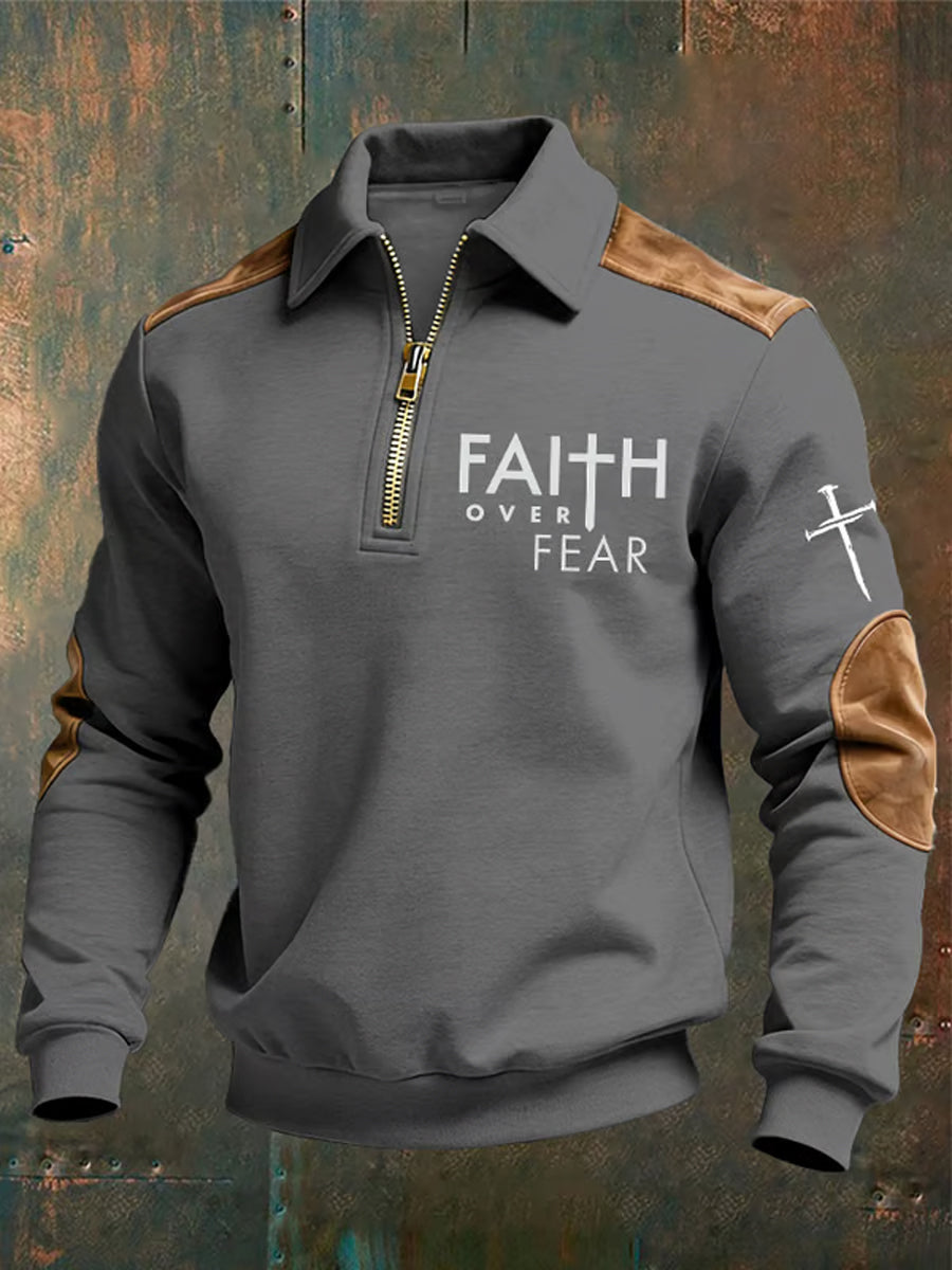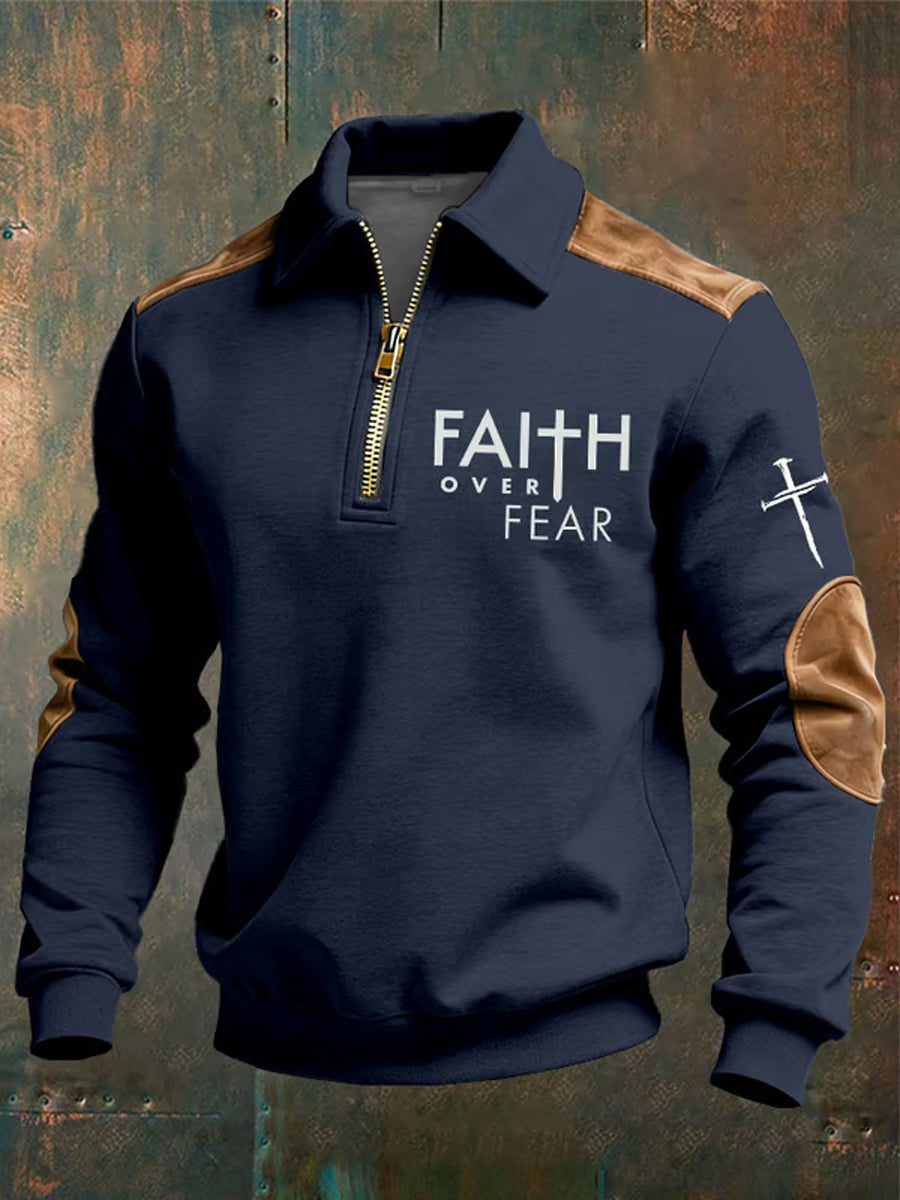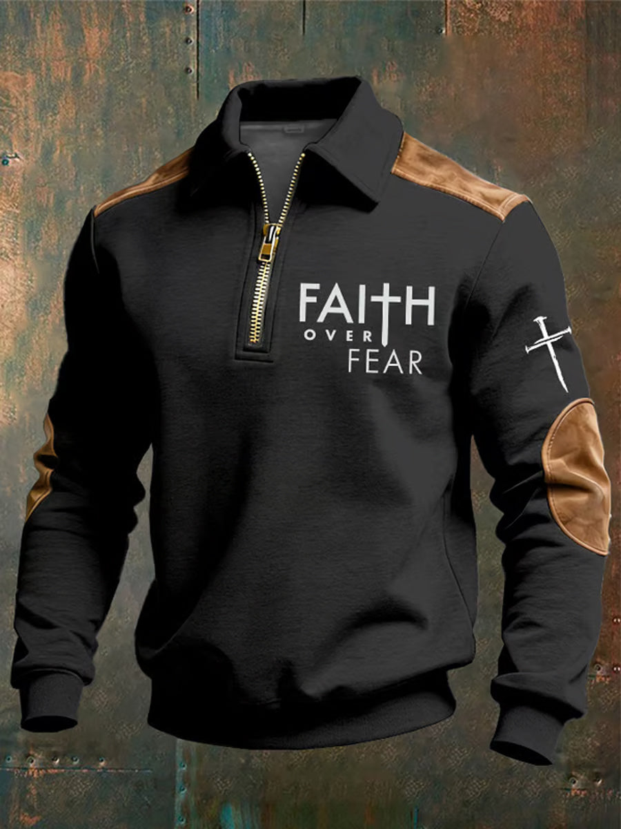 Men's Christian Faith Over Fear Cross Printed Collar Zipper Sweatshirt