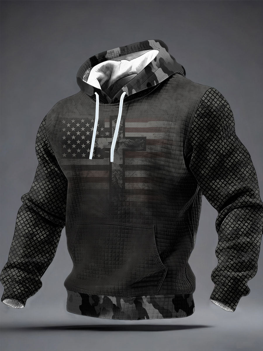 Men's Cross Flag Camouflage Checkered Cotton Hoodie