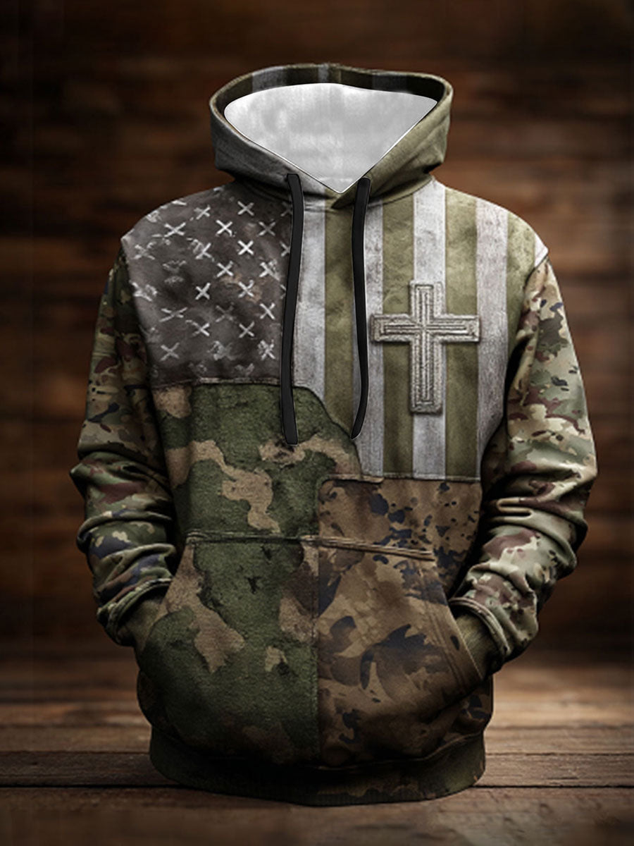 Men's Faifth Camouflage Oversized Drop-Shoulder Hoodie With Pockets