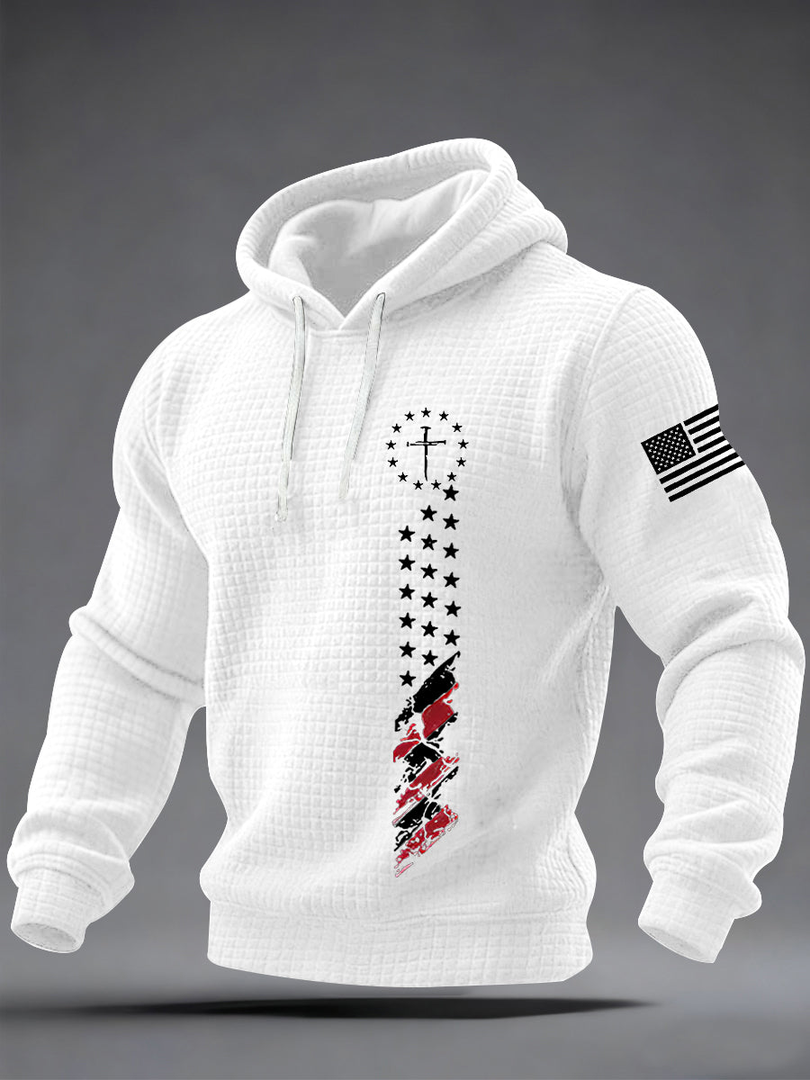 Men's Faith Cross Flag Checkered Cotton Hoodie