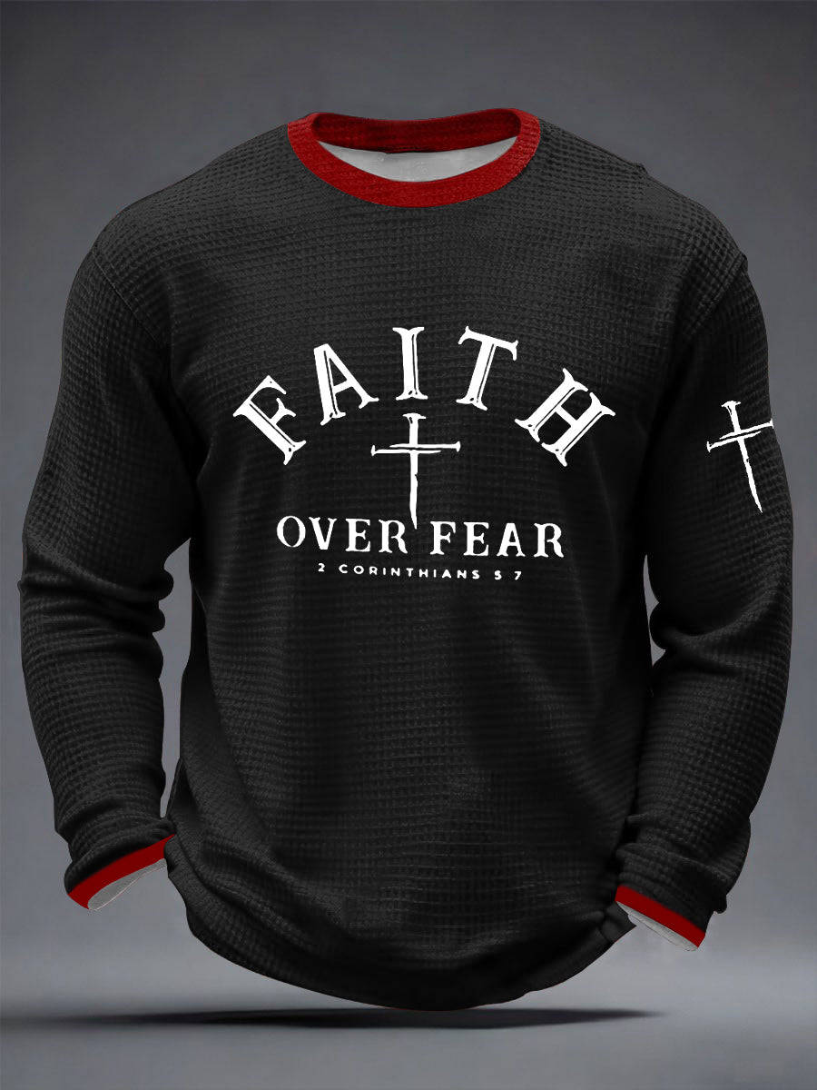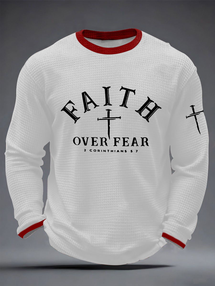 Men's Faith Over Fear Cross Waffle Long Sleeve T-Shirt