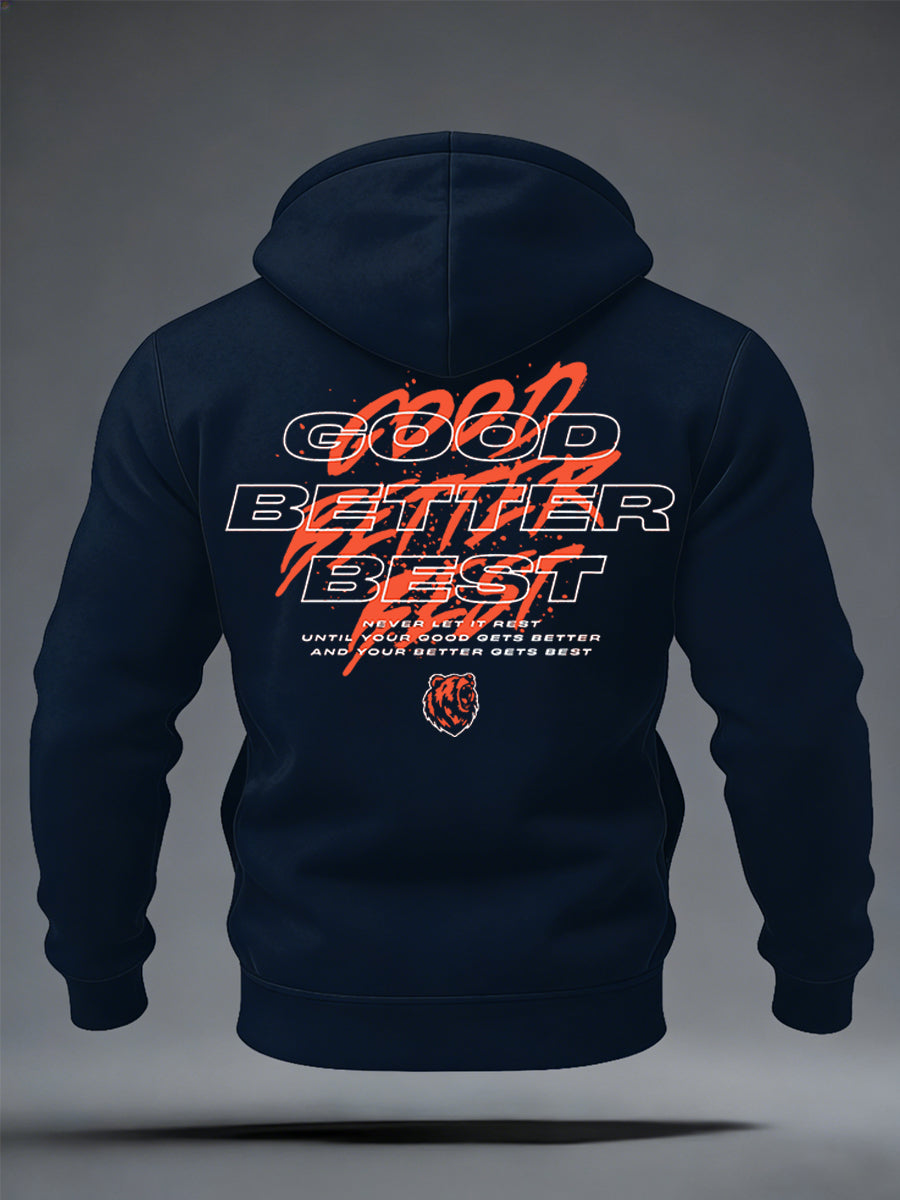 Men's Good Better Best Print Football Fans Gameday Casual Zipper Hoodie