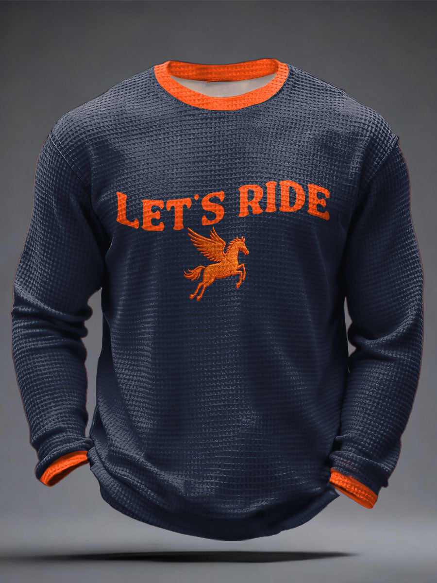 Men's Let's Ride Horse Football Lover Print Waffle Tops