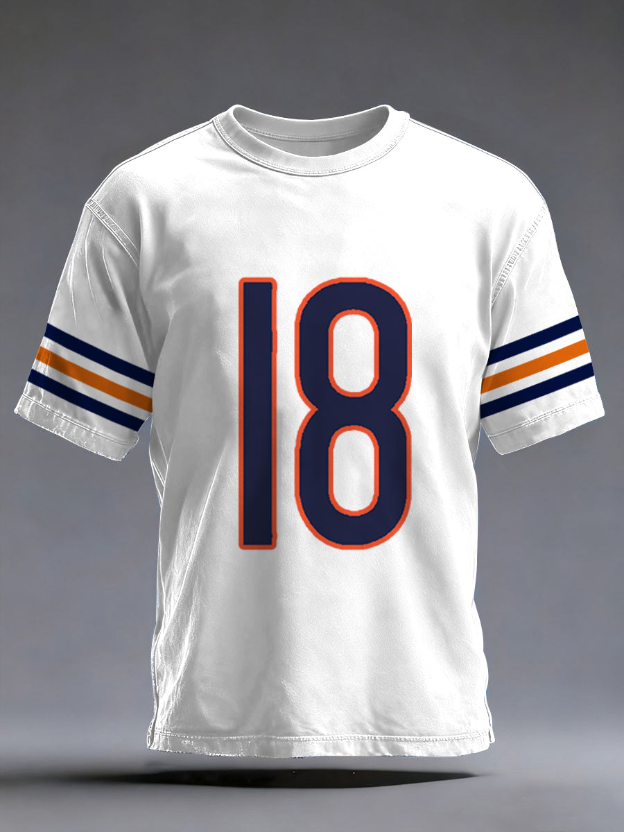 Men's Number 18 Chicago Football Fans Gameday Casual Tee