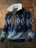 Men's Retro Color Block Print Casual Fur Collar Zip-up Hoodie