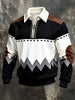 Men's Retro Color Block Print Zip-Up Corduroy Sweatshirt