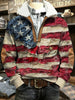 Men's Western Retro Flag Art Print Casual Casual Fur Collar Zip-up Hoodie