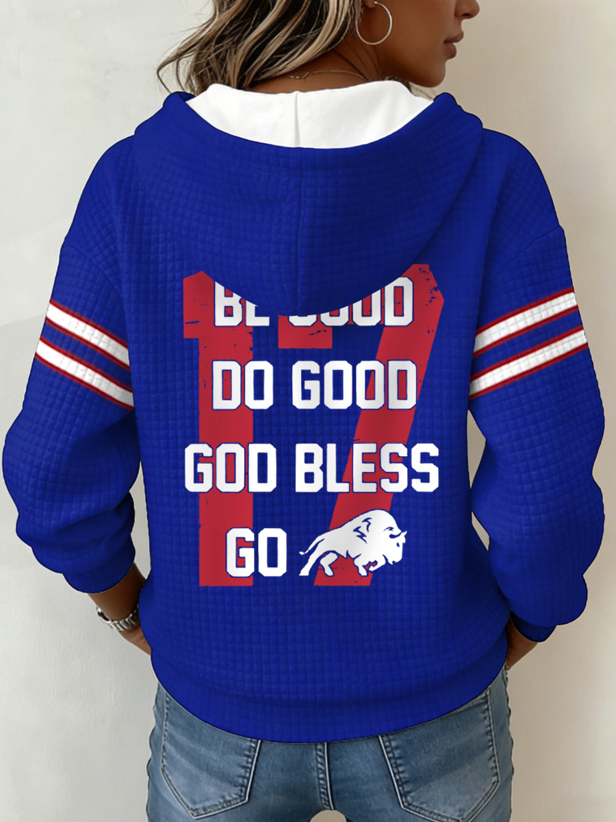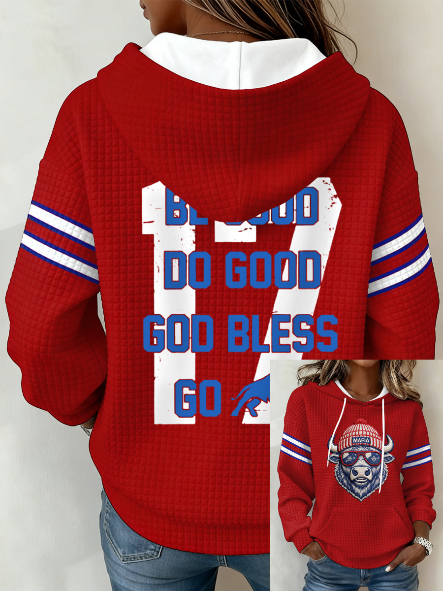 Women's Be Good Do Good God Bless Go Bills Football Fans Gameday Casual Waffle Hoodie