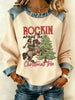 Women's Casual Retro Western Christmas Color Block Sweatshirt