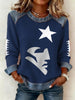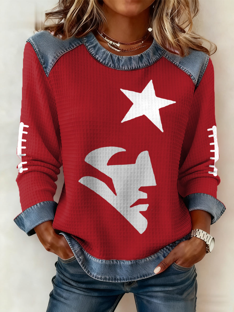 Women's Football Fans Gameday Casual Denim Patchwork Top