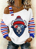 Women's Go Buffalo Stripes Print Football Fans Gameday Casual Off-Shoulder Top