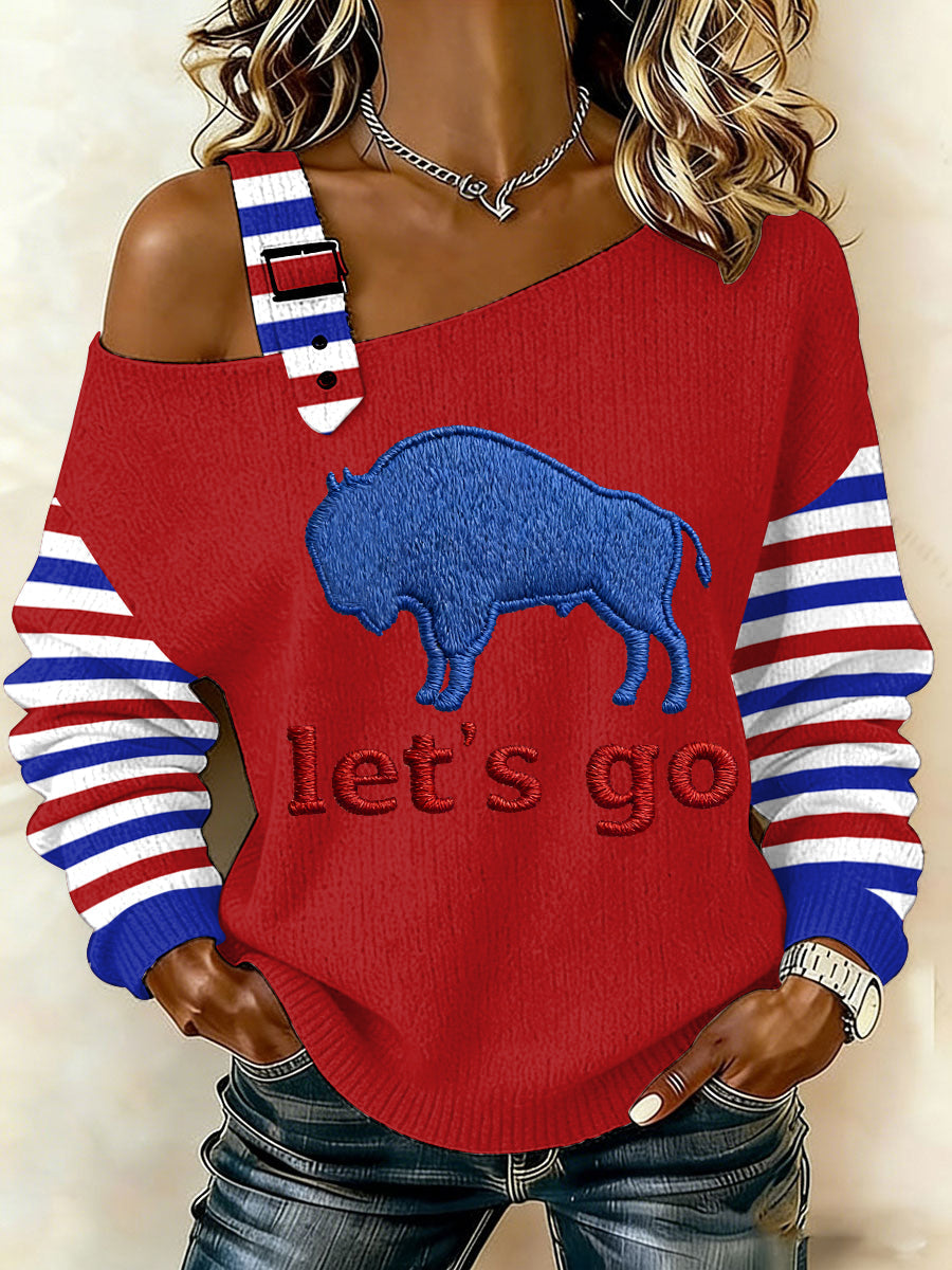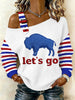 Women's Go Buffalo Stripes Print Football Fans Gameday Casual Off-Shoulder Top