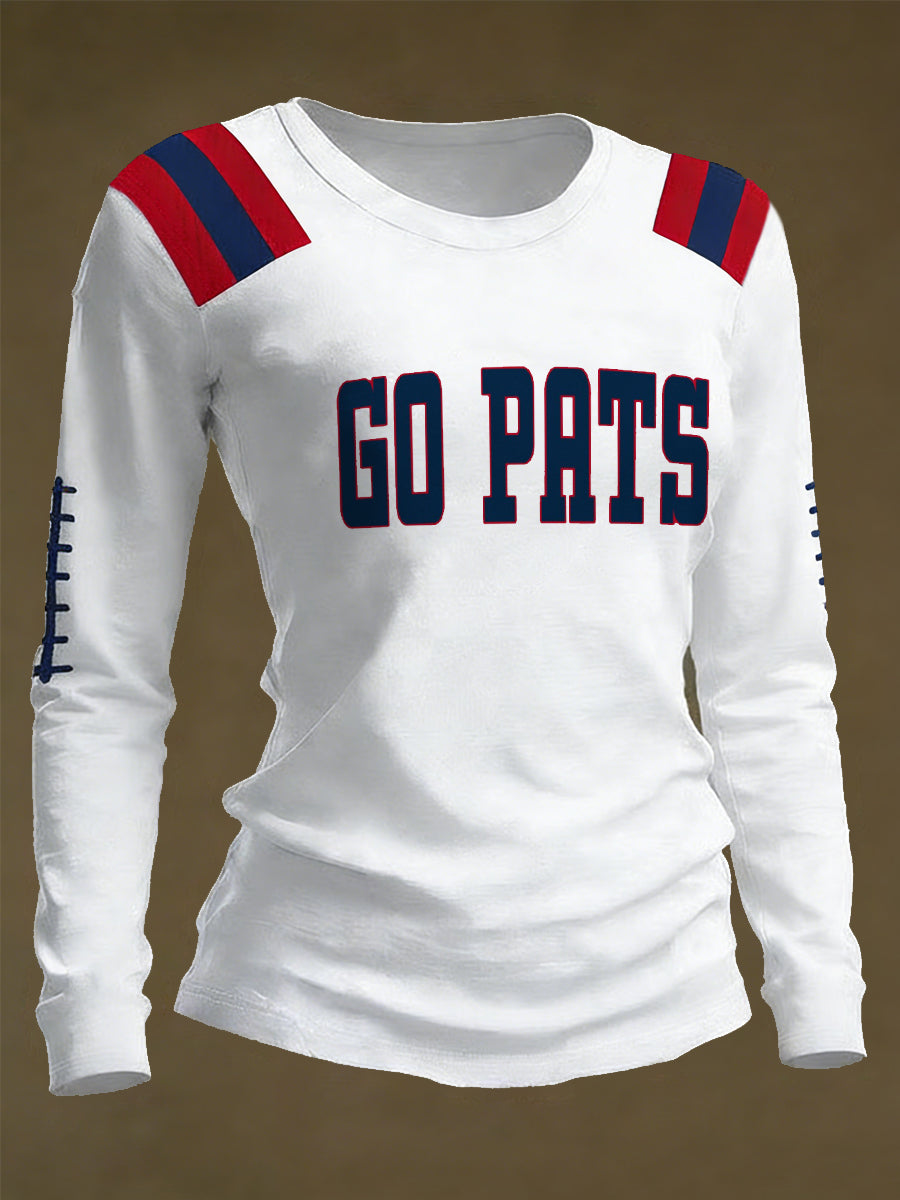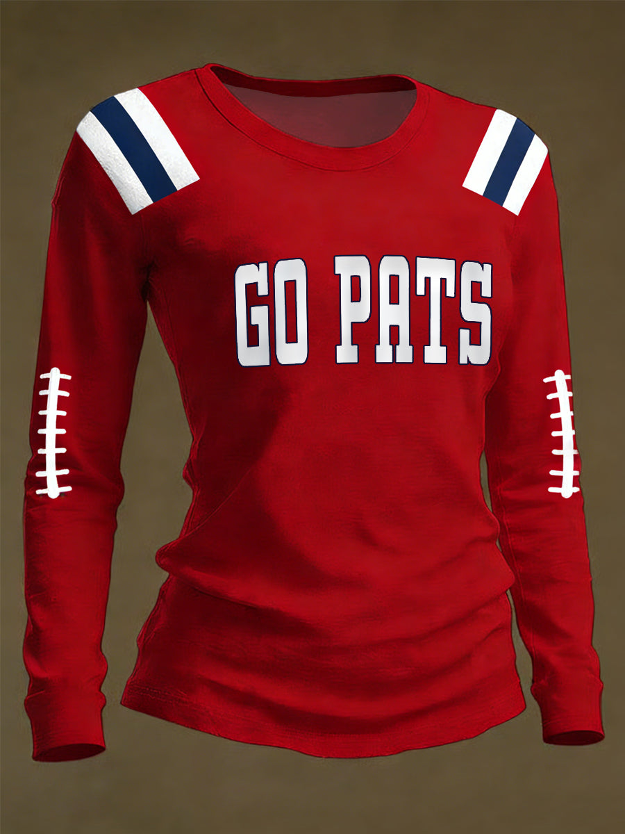 Women's Go Pats Print Gift For Football Fans Casual Long Sleeve Shirt