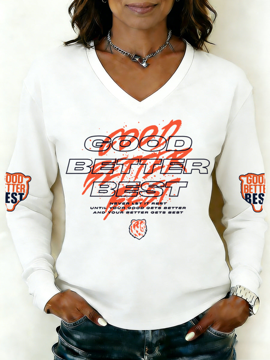 Women's Good Better Best Print Football Fans Gameday Casual Long-Sleeve V-Neck T-Shirt