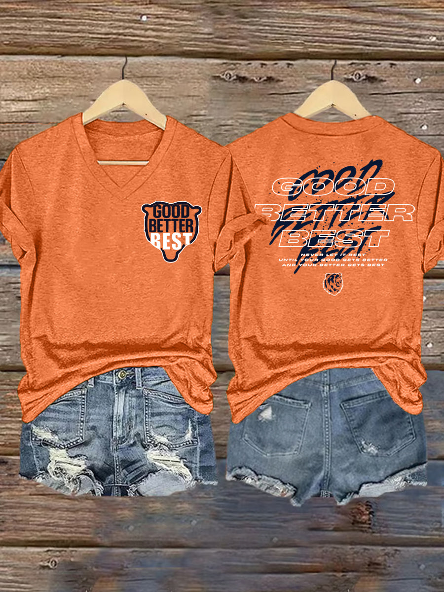 Women's Good Better Best Print Gift For Football Fans Gameday Casual V-Neck Tee