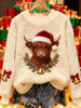 Women's Vintage Christmas Highland Cattle Printed Flannel Sweatshirt