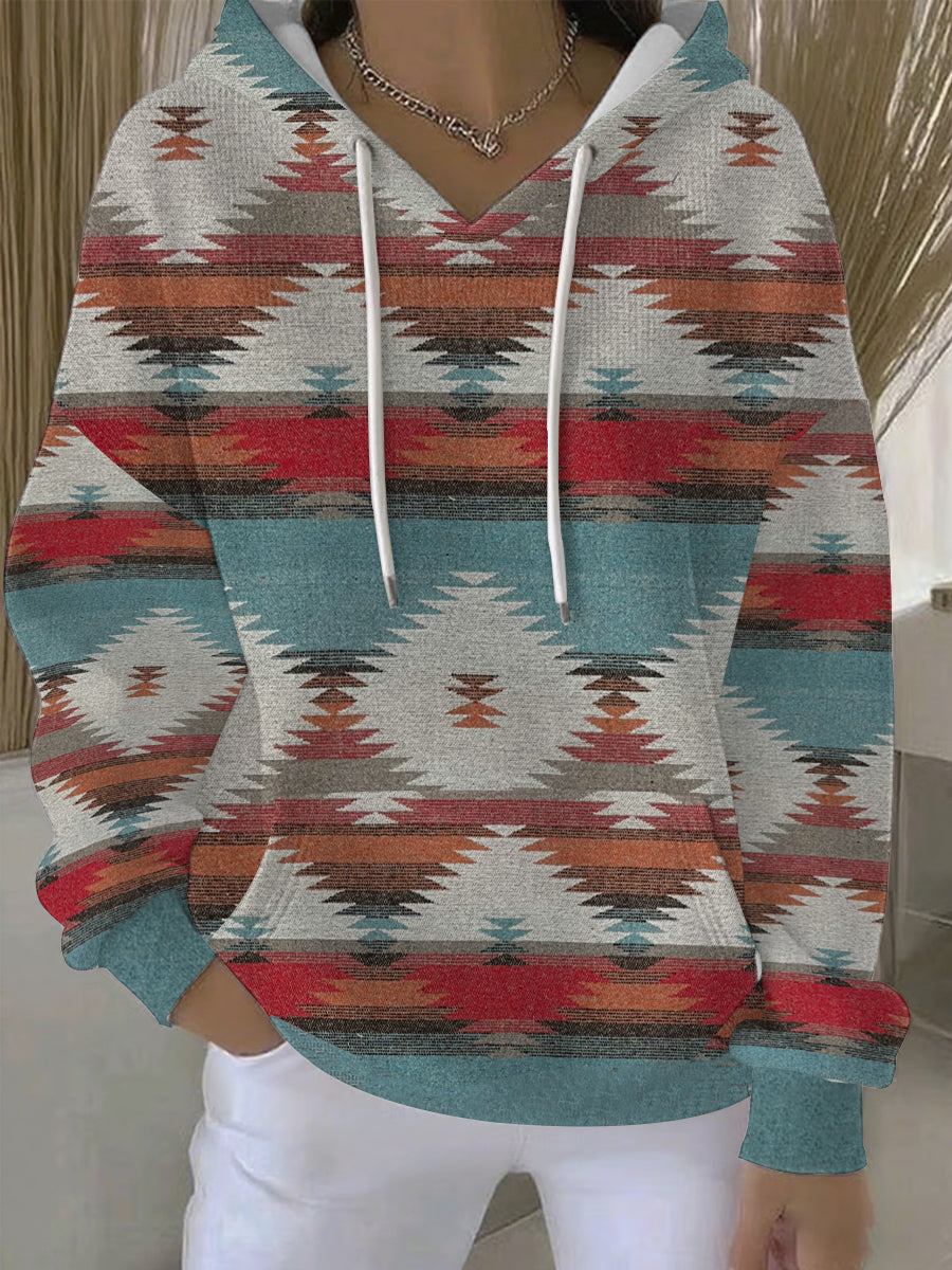 Women's Vintage Western Ethnic Aztec Pattern Casual Hoodie